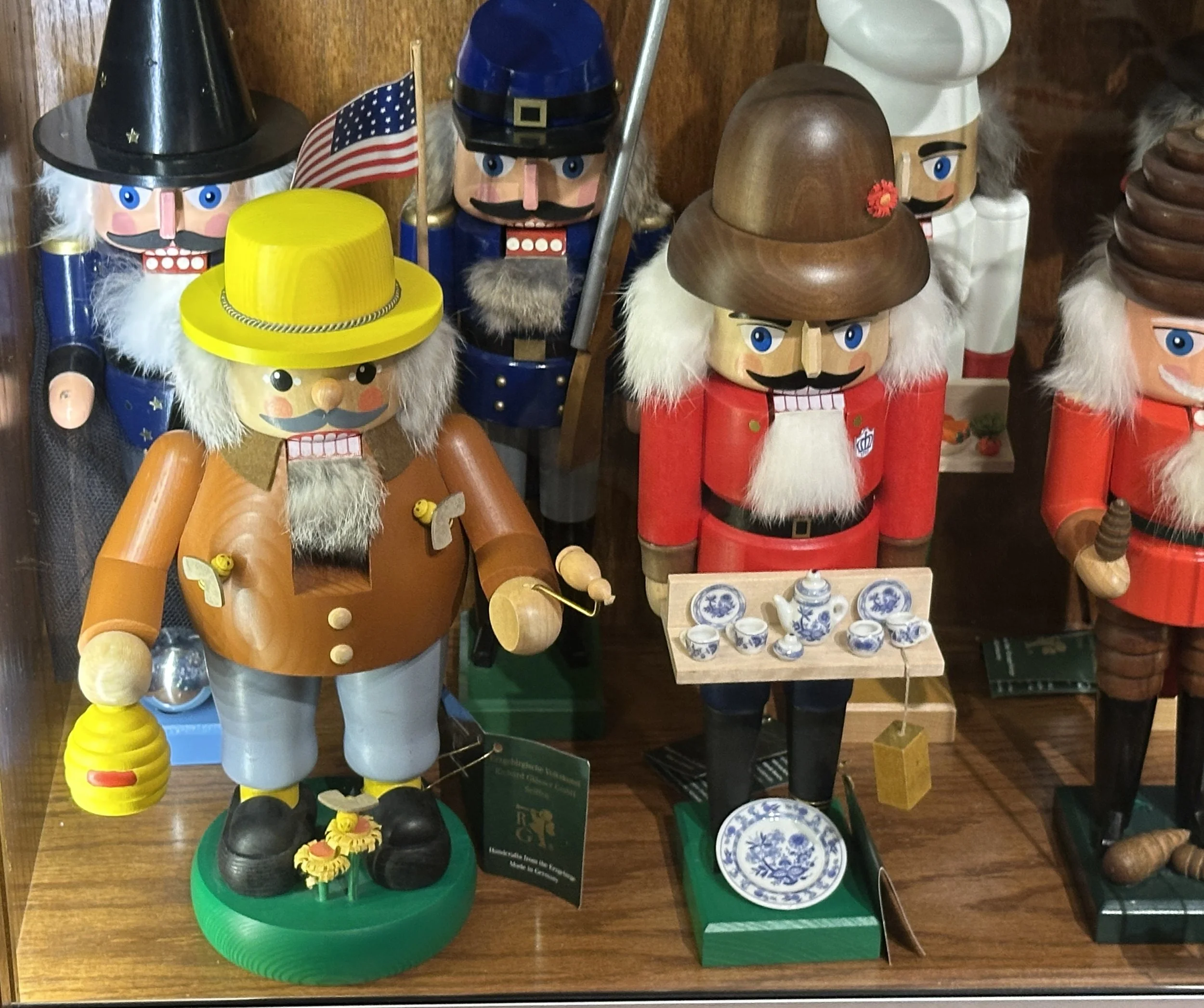 I had never really taken much of an interest in nutcrackers until I saw the fascinating collection in Luverne. After doing a bit of research, I discovered that nutcrackers originated in the Erzgebirge, or the Ore Mountains, area of Germany in the late 1600s. Erzgebirge became known for its craftsmanship and detail in creating nutcrackers after miners in the region needed another occupation. Nutcrackers became more popular and associated with the holidays in the late 1800s after the theatrical popularity of Tchaikovsky’s Nutcracker Ballet. Today the nutcracker remains a popular collector item.