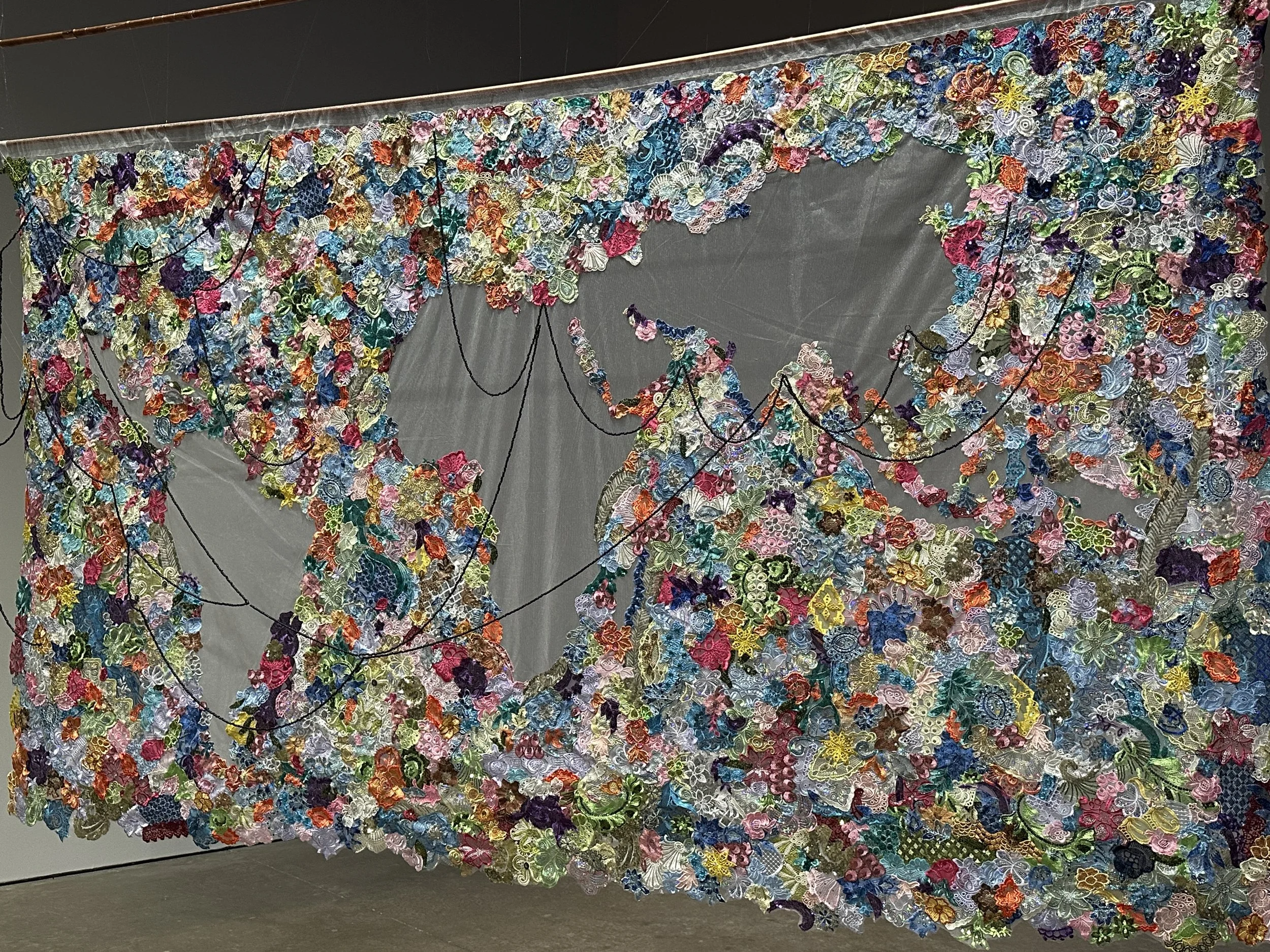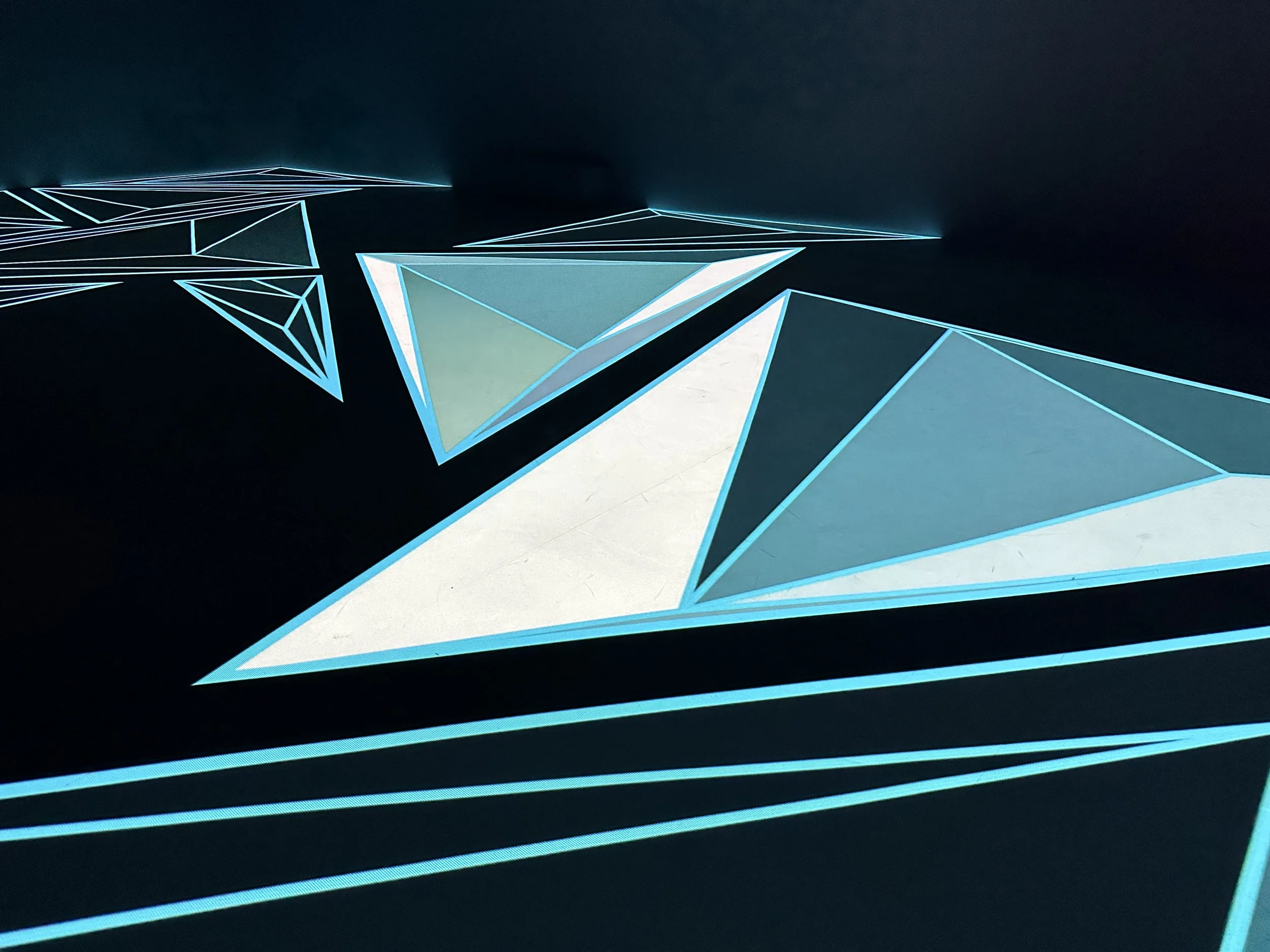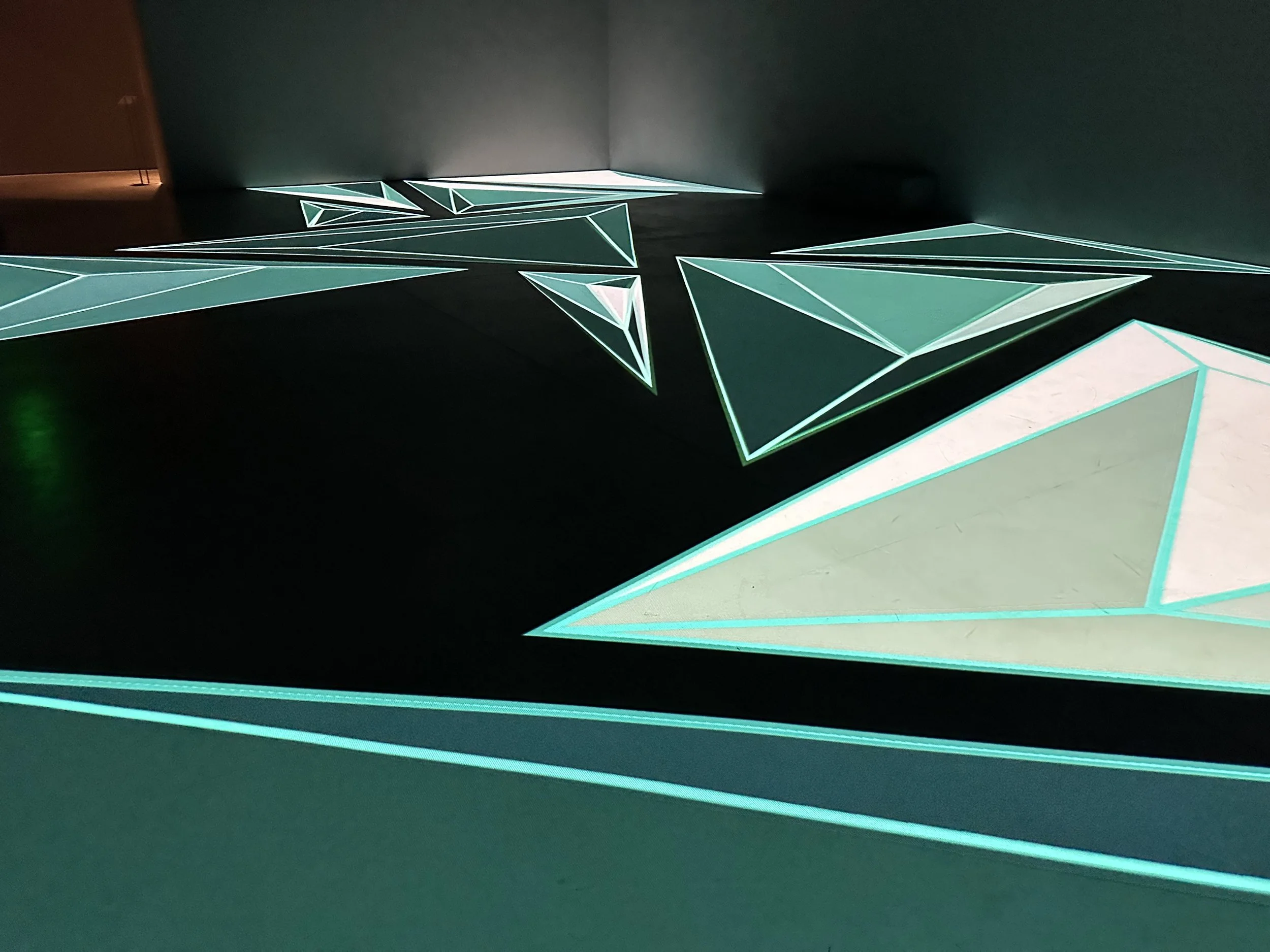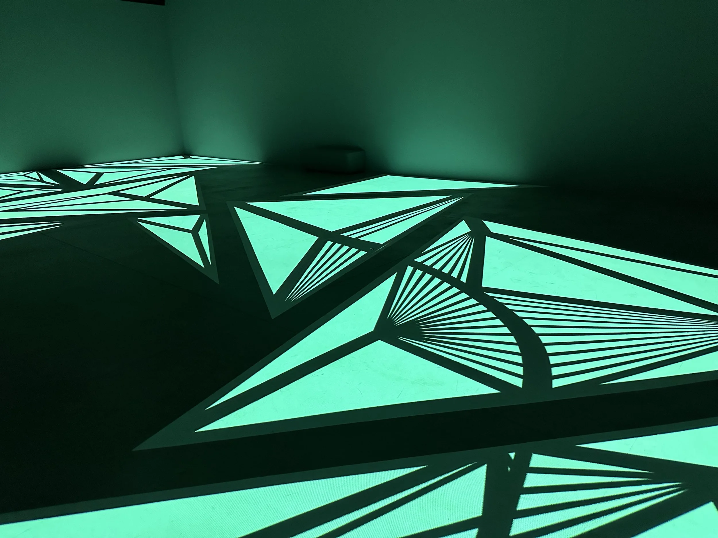 When I visited in mid-February, there were three featured special exhibits. All were interesting and I learned quite a bit. My favorite exhibit was a digital exhibit by a Dutch artist named Roelof Knol. The exhibit was entitled “The Space in Between.” It consisted of shapes and colors projected onto the floor melding into each other. So often we are asked to look up in an art museum. It was a unique experience to view the exhibit from above. I have to admit I was rather transfixed by this exhibit and went back in the room several times to enjoy it. I also am a huge fan of spotting shapes, despite the fact geometry was not my favorite subject. I think if there had been someplace to sit in the exhibit I might have stayed all day! The exhibit will be showing until July 28, 2024. See some photos and videos below. And learn more at the link.