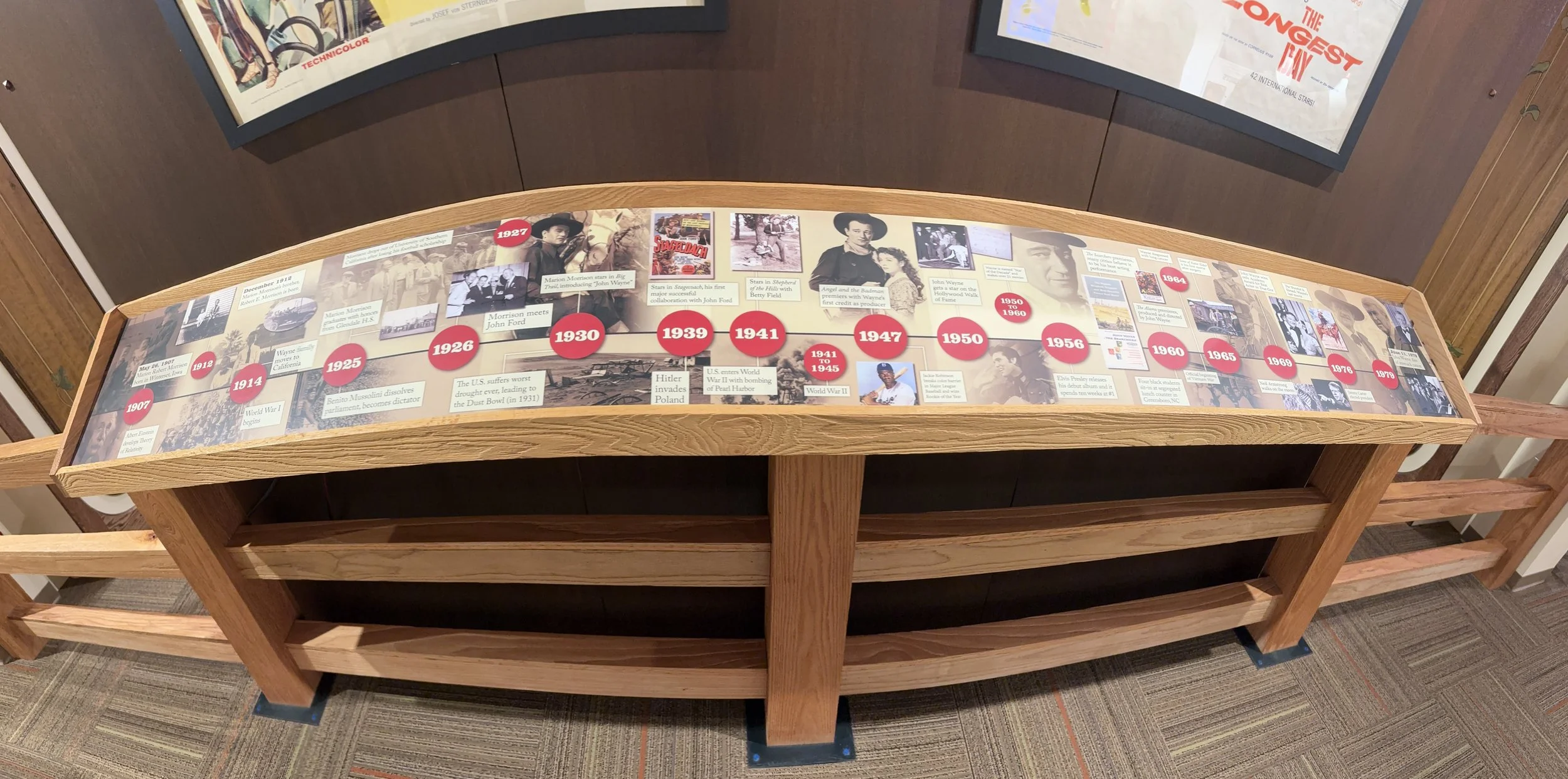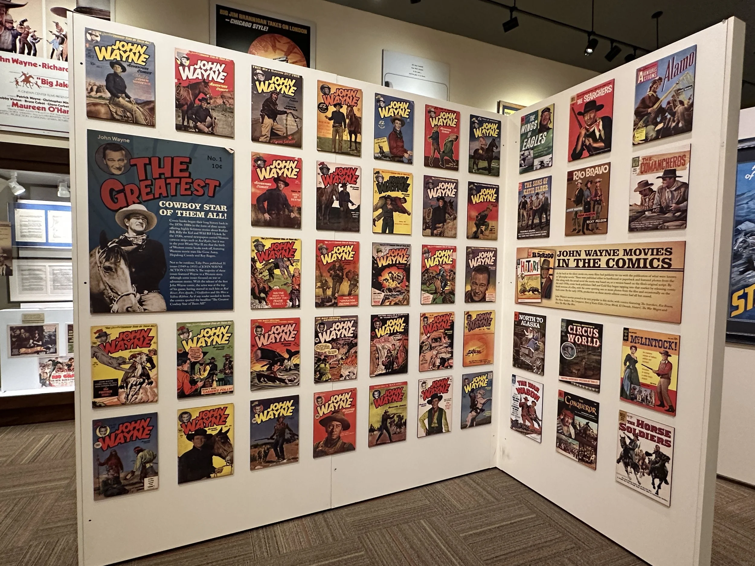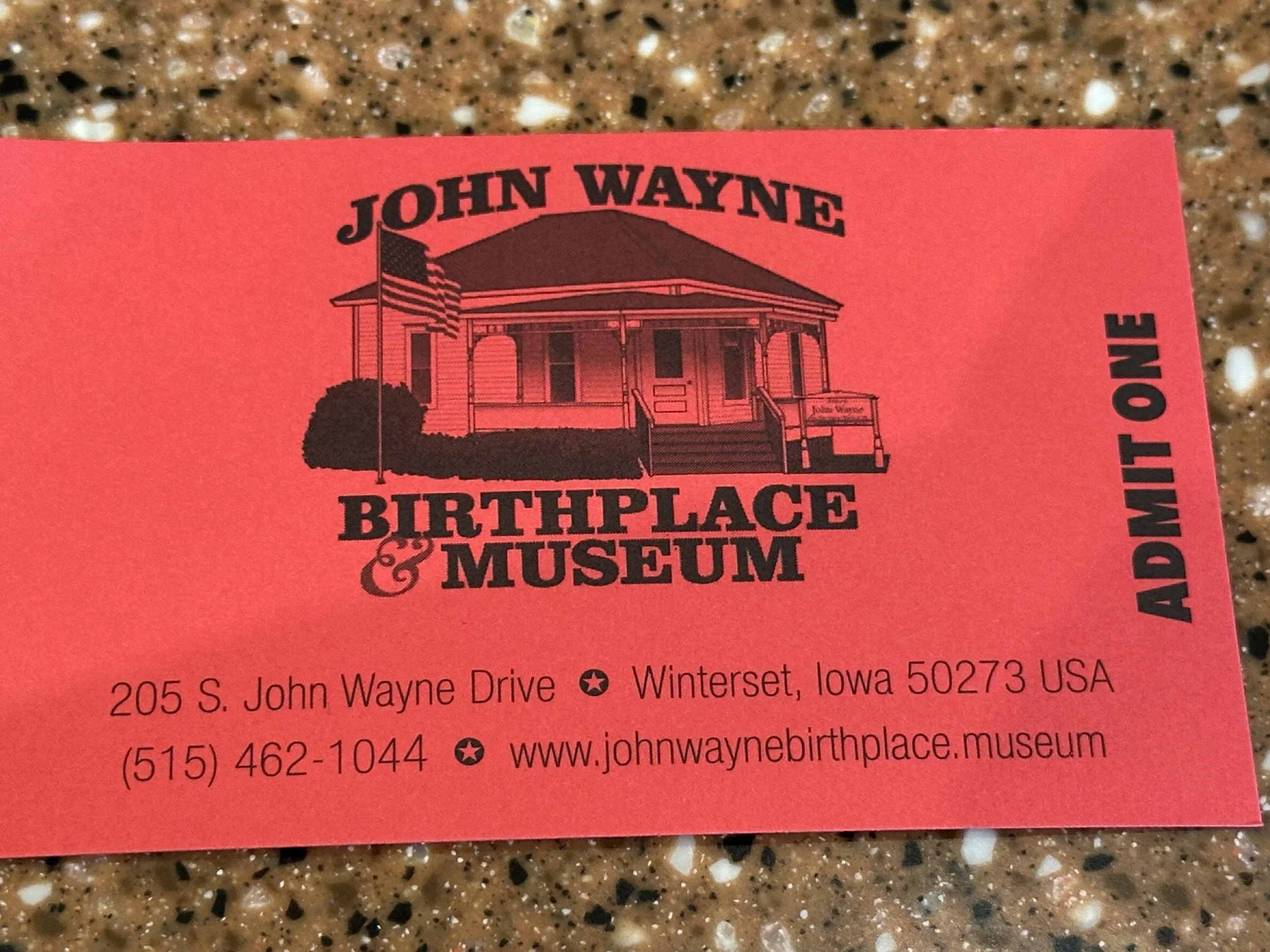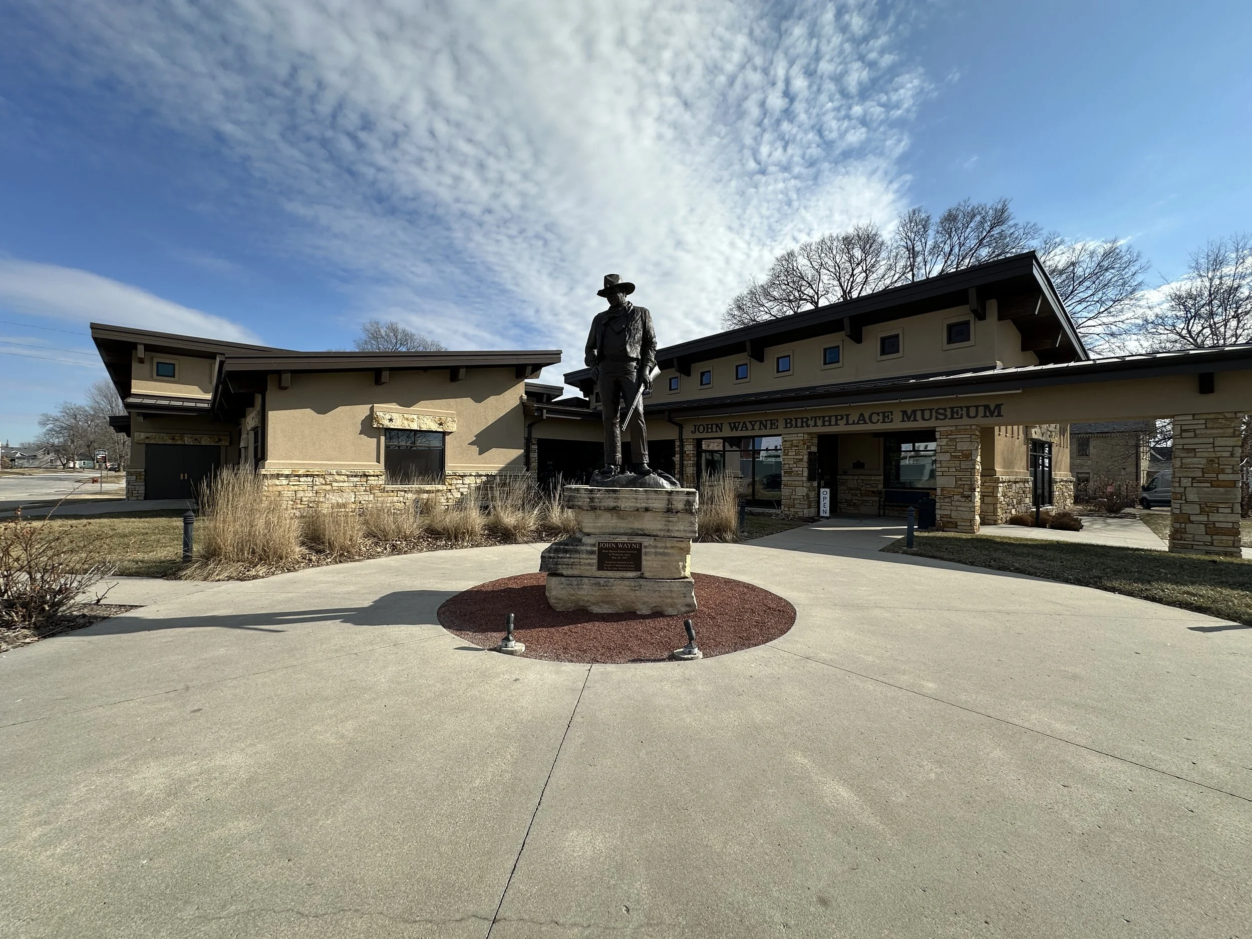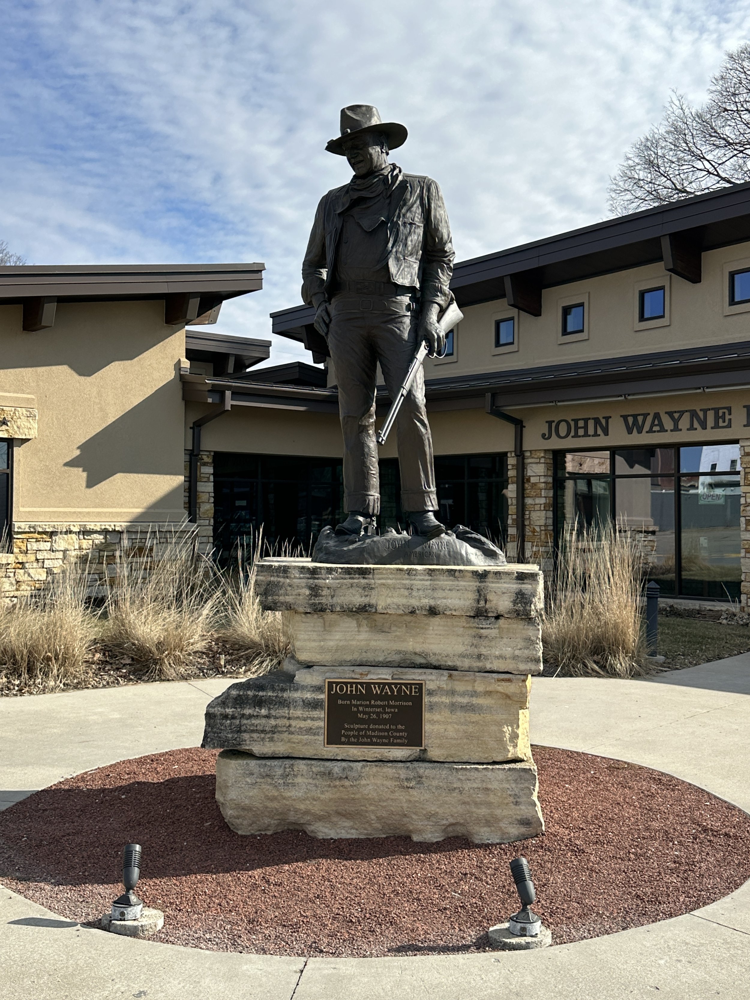 After lunch I headed to the John Wayne Museum just off the main square. John Wayne, the famous movie star, lived in Winterset for a time and you can view much movie memorabilia and learn about his life. In warmer months you can visit the four-room house he grew up in. After browsing two rooms full of exhibits, you can visit a mini theater showing clips of John Wayne movies and learn more about his personal life. The movie is eleven minutes long and runs on the quarter hour, or every fifteen minutes. There is also a large gift shop in the center of the museum. While, admittedly I am not much of a Western or Classic movie fan, I did enjoy my visit. My favorite part was seeing the artwork related to John Wayne, such as a piece from Andy Warhol and several sculptures. I had no idea that John Wayne starred in so many films. I’d recommend the museum if you have at least an hour to spend in town.