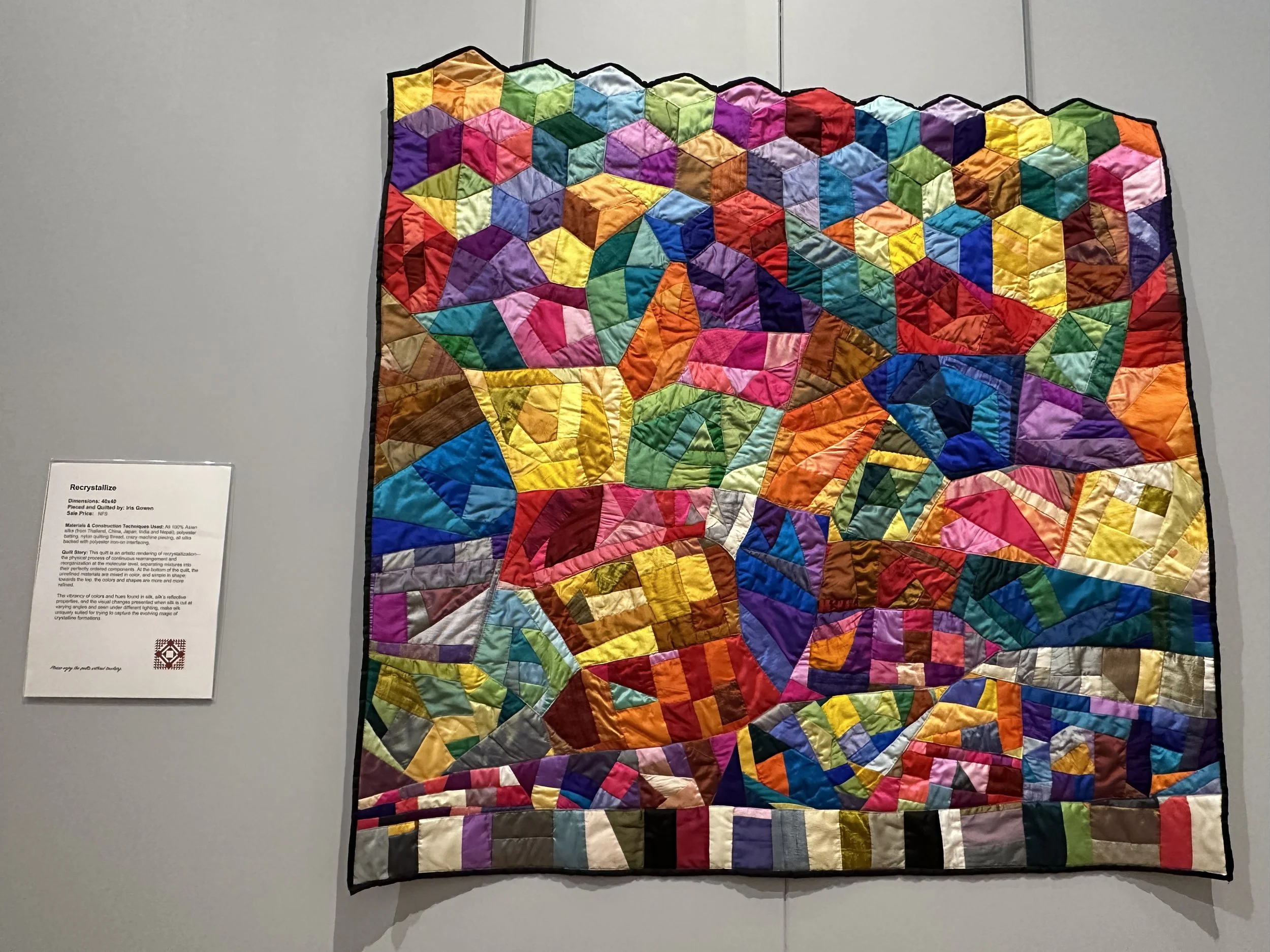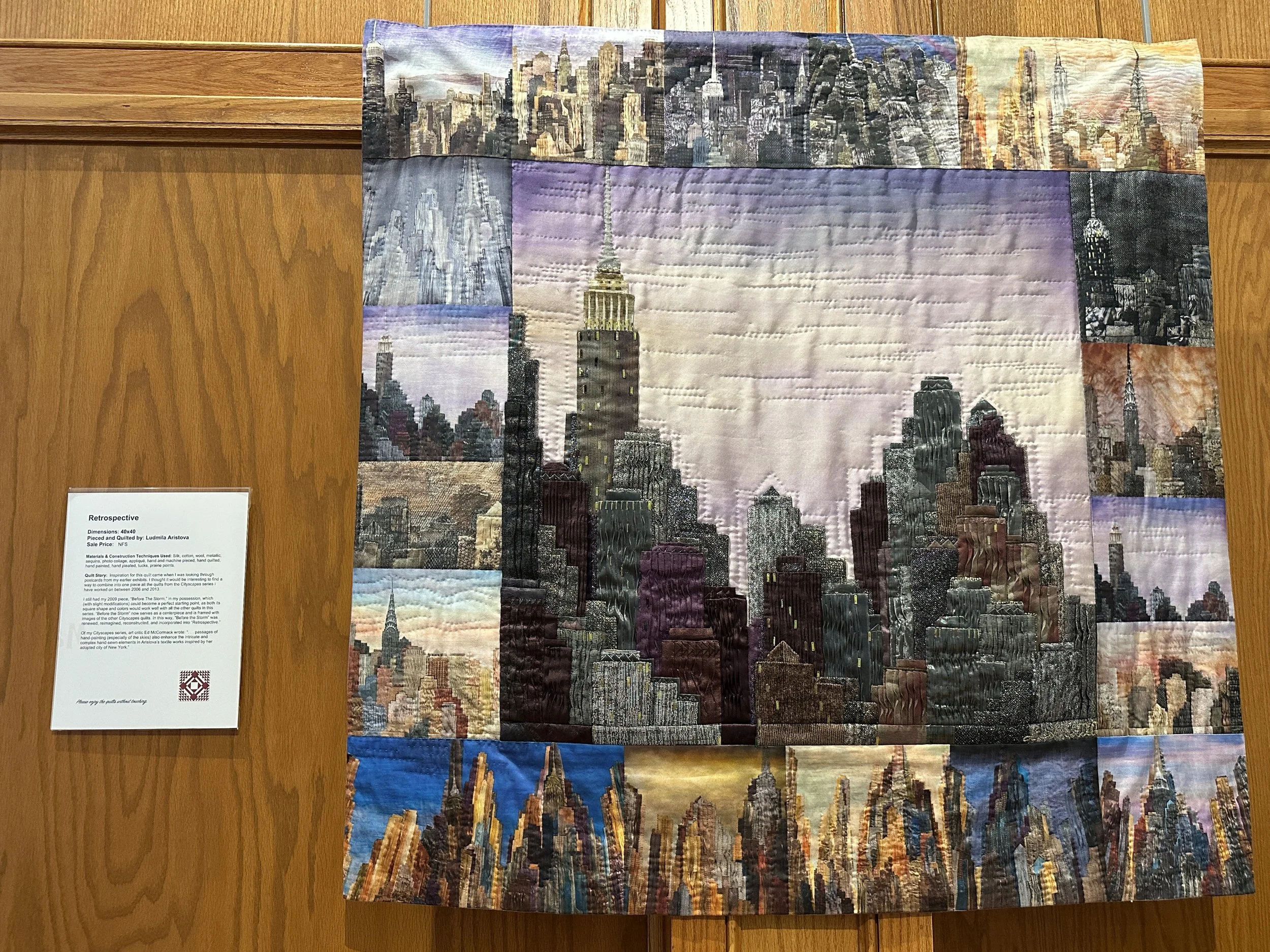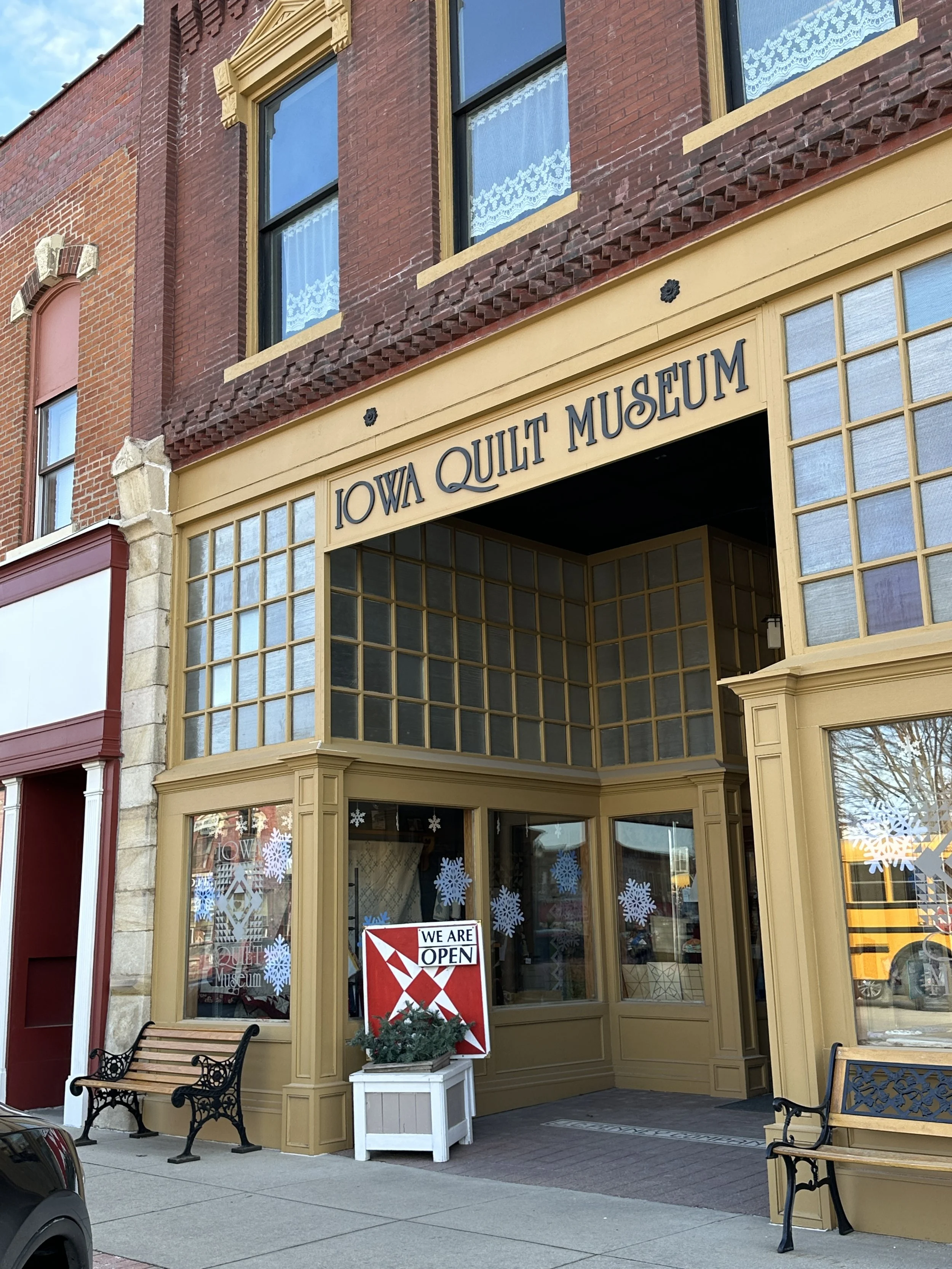 The next attraction I took in was the Iowa Quilt Museum. It turned out to be my favorite attraction of the afternoon. The quilts displayed were themed, “Renewal, reinvention, and resurgence…” Some of the quilts were older and remade for a new purpose. The quilts were colorful, creative, and varied in their topics. I spent about 30 minutes there taking it all in and taking photographs. Incidentally, a quilting group was working in part of the museum and they sounded like they were having a wonderful time while they worked. I wanted to join them! The museum does have an upstairs with additional quilts. While I didn’t have time to see that, I will go back on a future visit. The quilt exhibits change several times per year so there is always something new to see. There is also a fun quilt-themed gift shop in the entry area of the museum. Down the street is a full service fabric and quilt shop called the Piece Work Quilt Shop. I regret I did not have time to visit, but I will certainly do so when I go back.