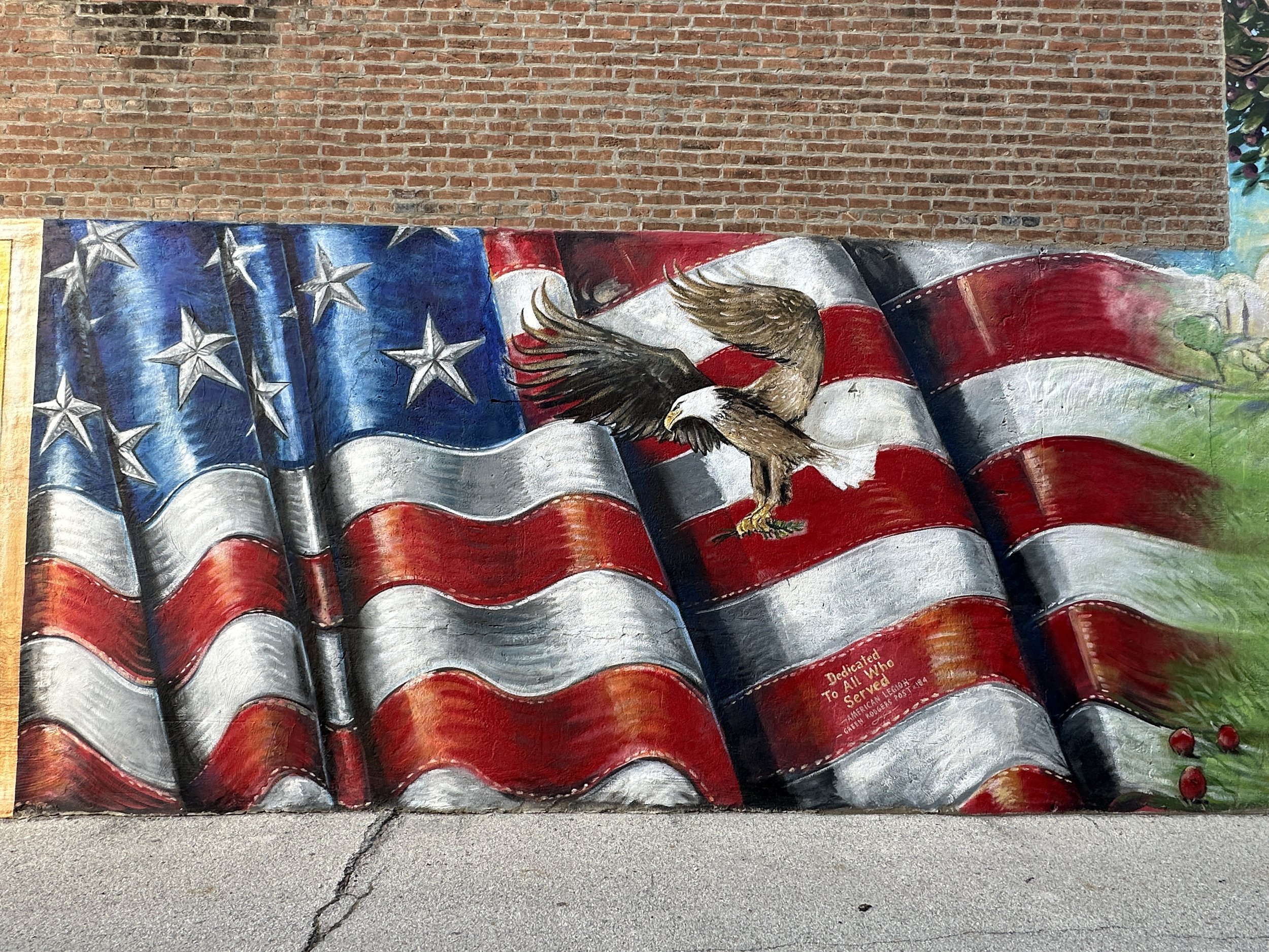 My last Winterset stop included driving through town that took me to a beautiful series of murals in a little alley wall on the main town square. There were several different murals and I enjoyed viewing them. I will only show part of them because I want you to explore Winterset as well!