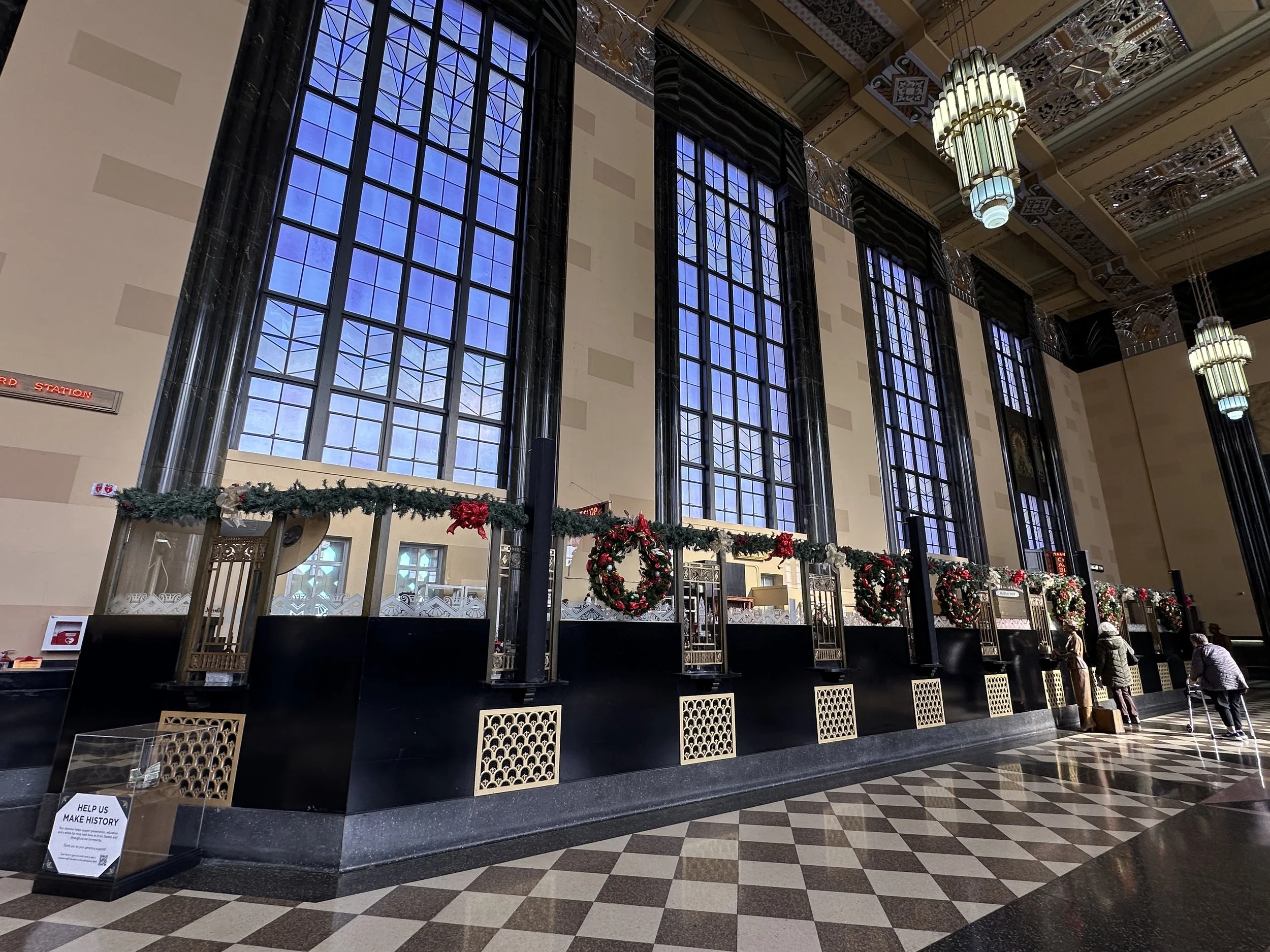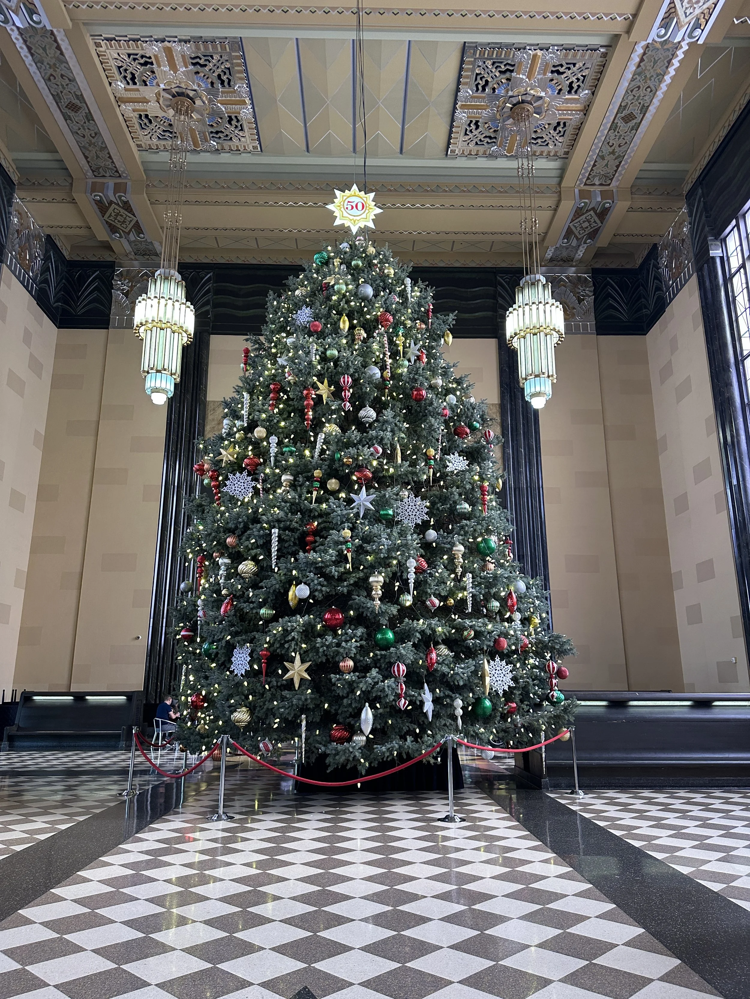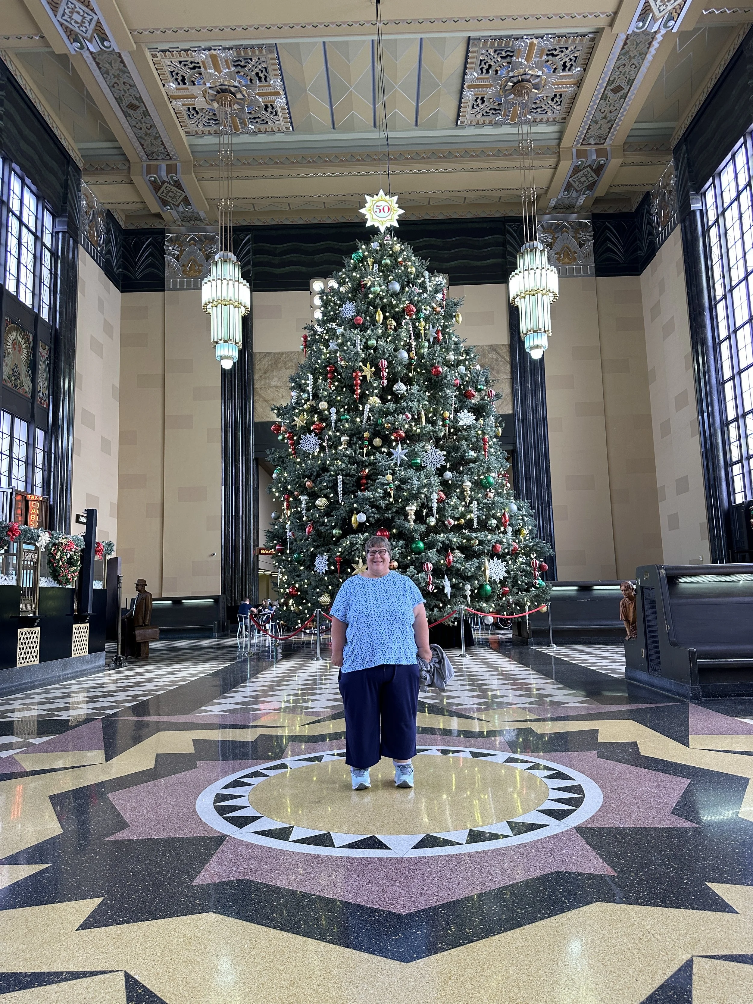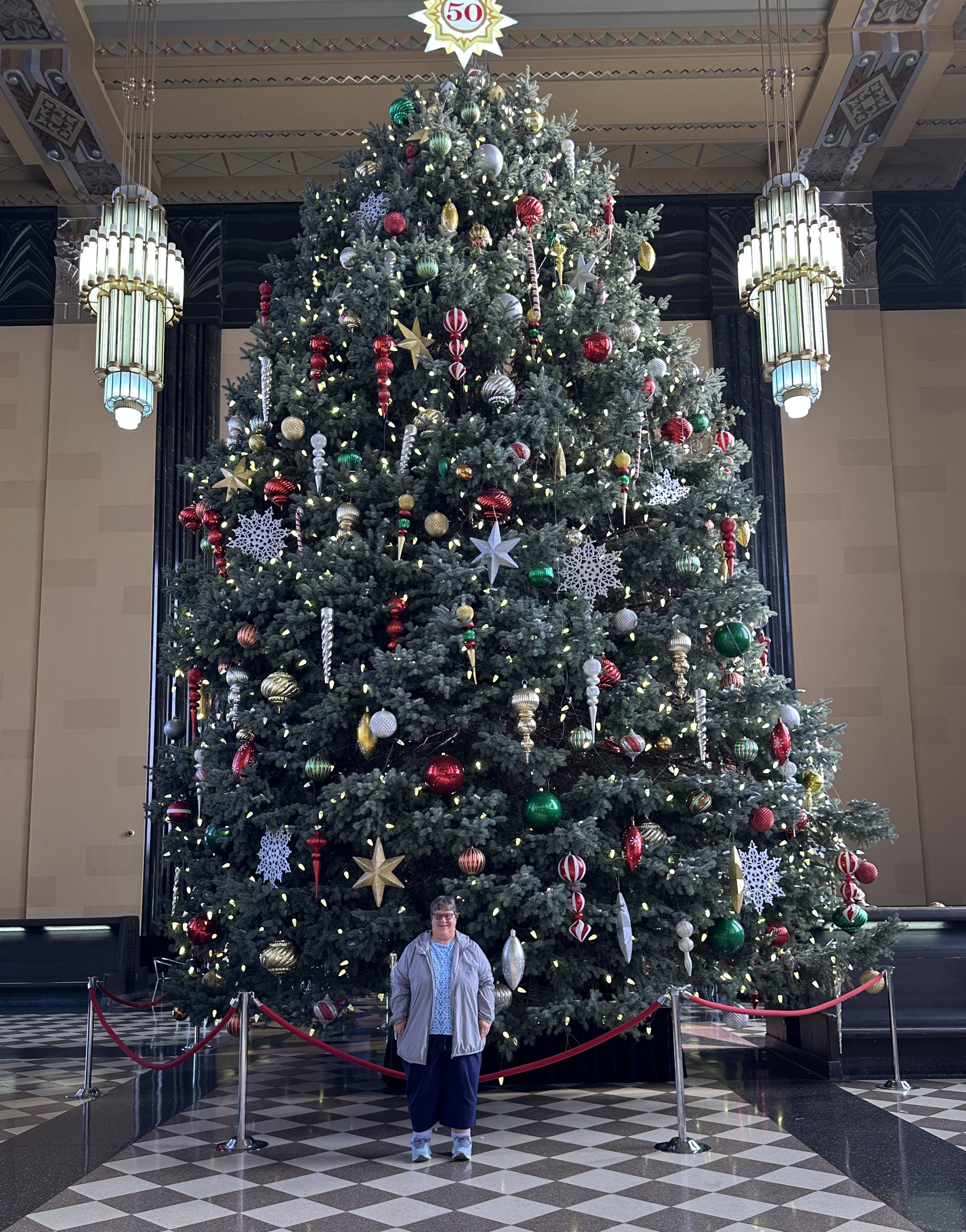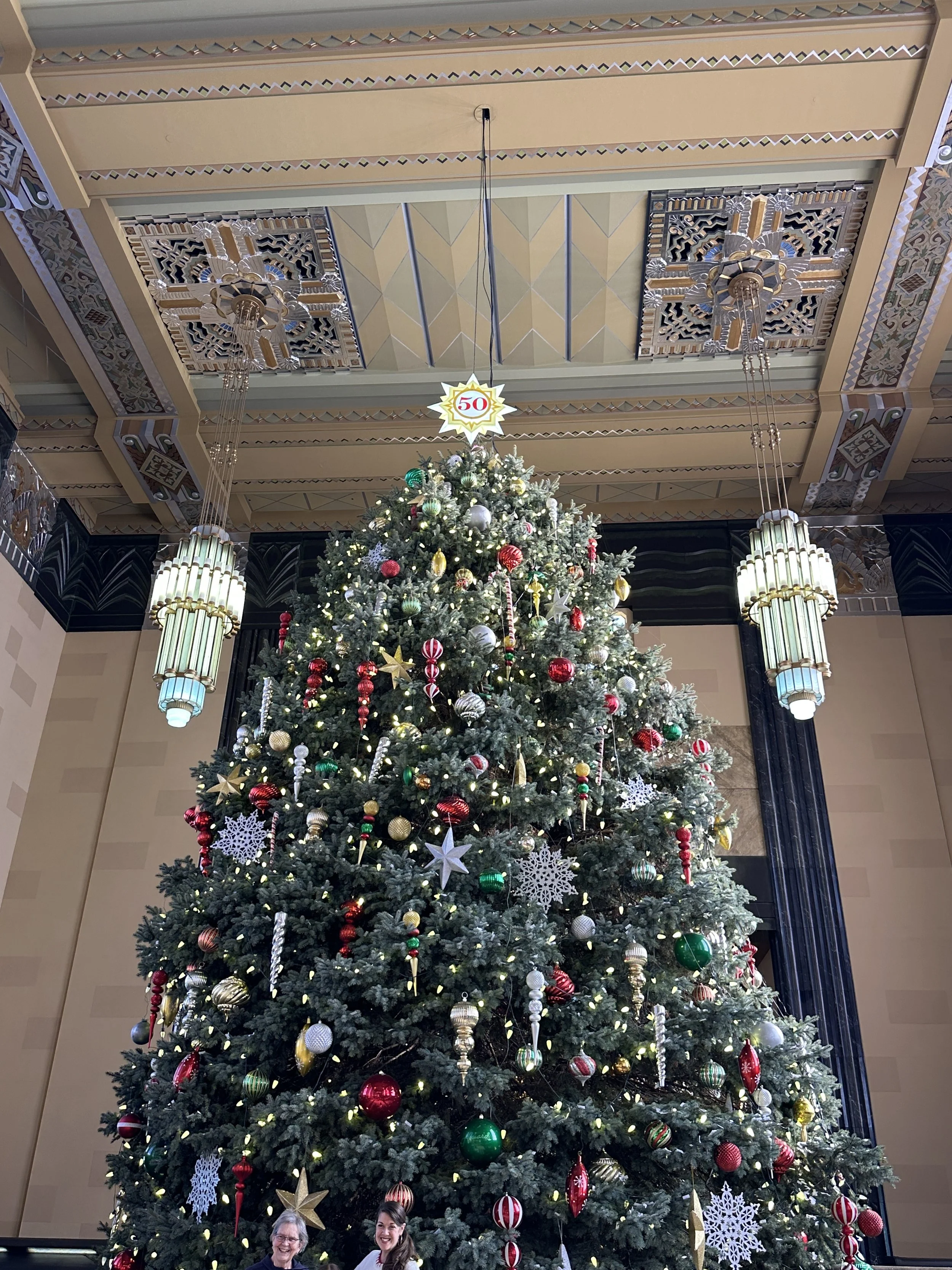 First, visit the holiday exhibits like the giant decorated Holiday tree in the expansive main hall. You and your family really can’t go wrong with a photo in front of the giant tree. It makes a gorgeous backdrop! My family and I try to take a photo there every year. Insider tip: You can often “swap photo-taking responsibilities with folks near you in line. Just ask! Midwesterners are generally a kind group! That way everyone in your family can be in the holiday photo. Don’t be shy. 😉