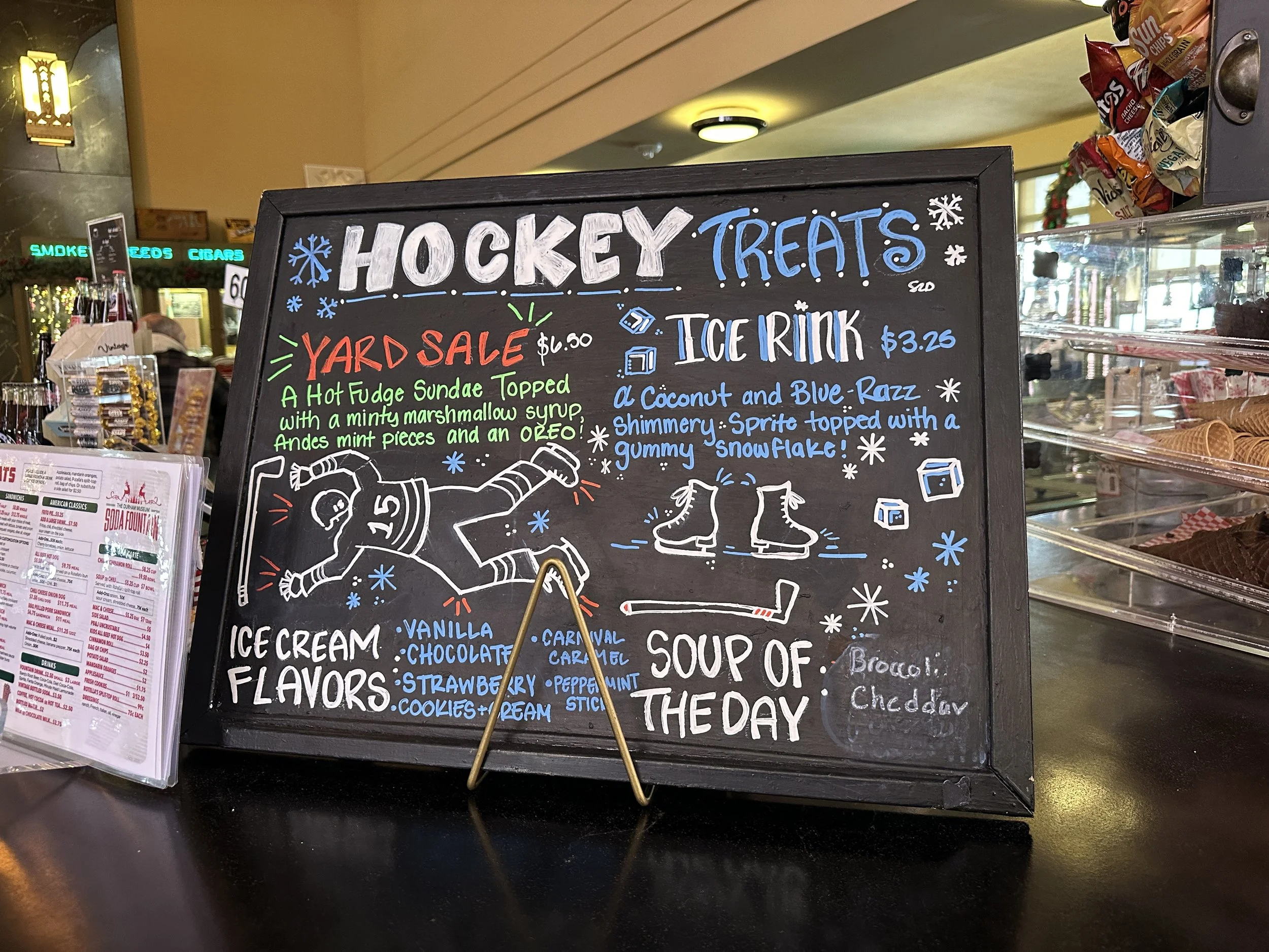 The Durham has many historical exhibits as well, but I will focus on them in a later post. However, no visit to the Durham is complete without visiting the gift shop and the old fashioned soda fountain for a delicious lunch or treat. I’ll wrap up this post with a few photos of the Durham main hall and my lunch at the soda fountain.
