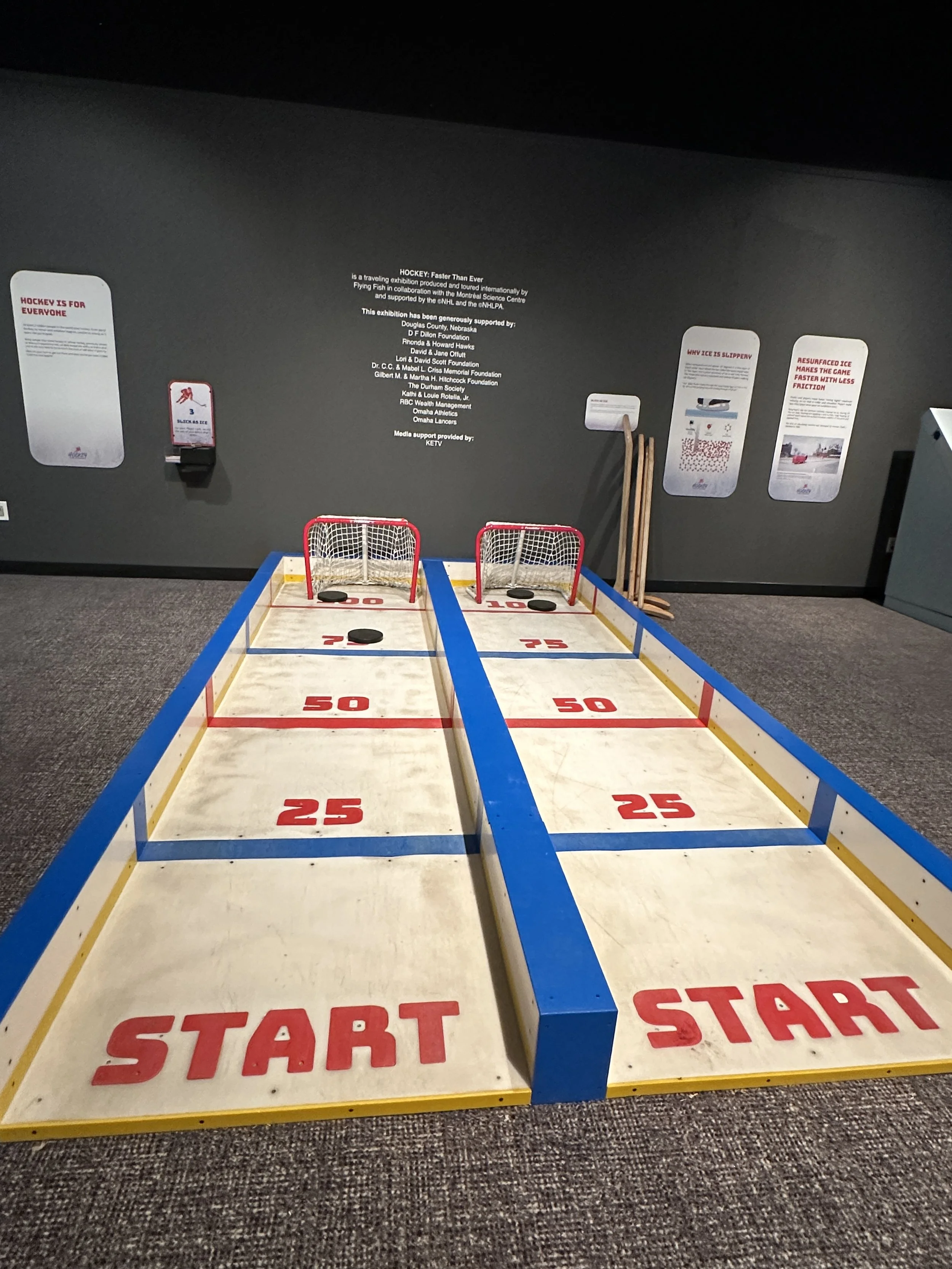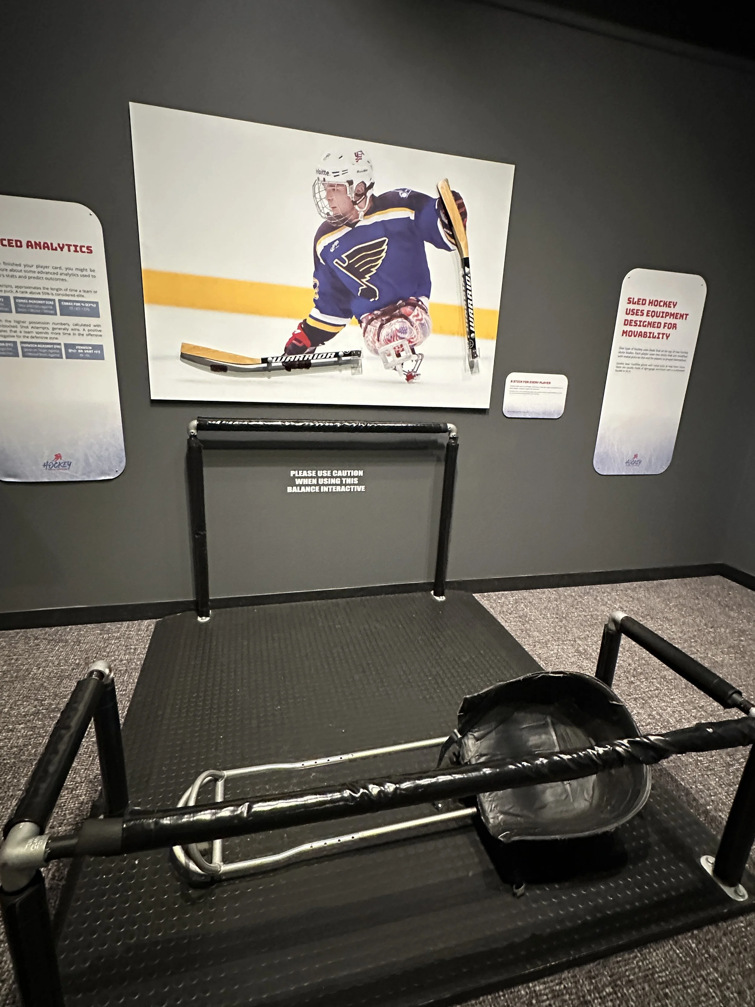 The main, featured temporary exhibit is called “Hockey: Faster Than Ever” and covers many aspects of the game of hockey from the players to techniques to statistics. While I have never been to a hockey game I still had fun trying out the exhibits and learning about the sport. Here is a funny story from the exhibit, experienced while I was going through the exhibit. This is taken from a Facebook post the day I went.