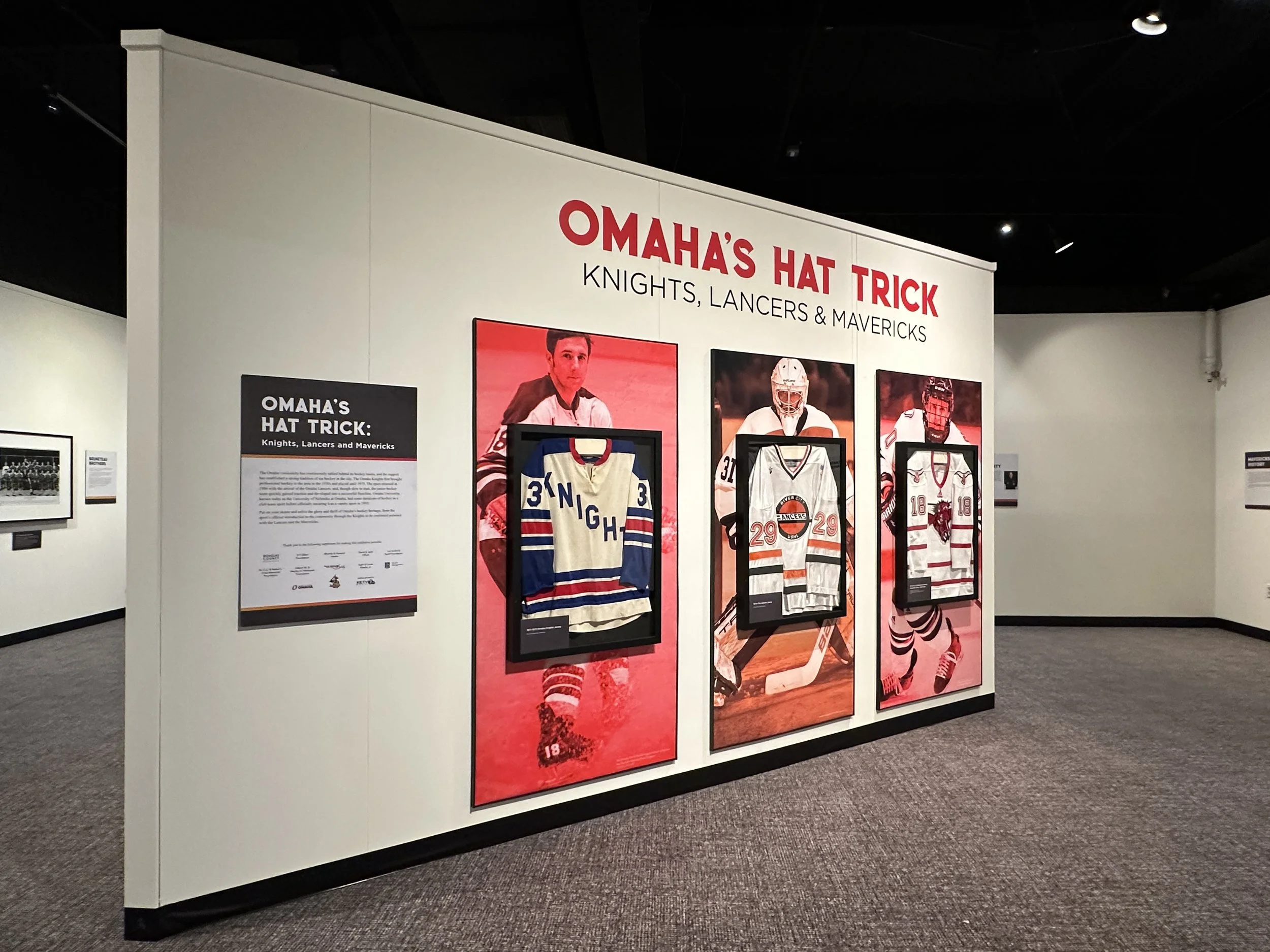 In a small exhibit space adjacent to the hockey exhibit is a display devoted to Omaha’s hockey team, the Omaha Lancers. It was in this exhibit that I learned what a hat trick is hockey is. A photo from that exhibit is below. This exhibit is also available until January 11, 2026.