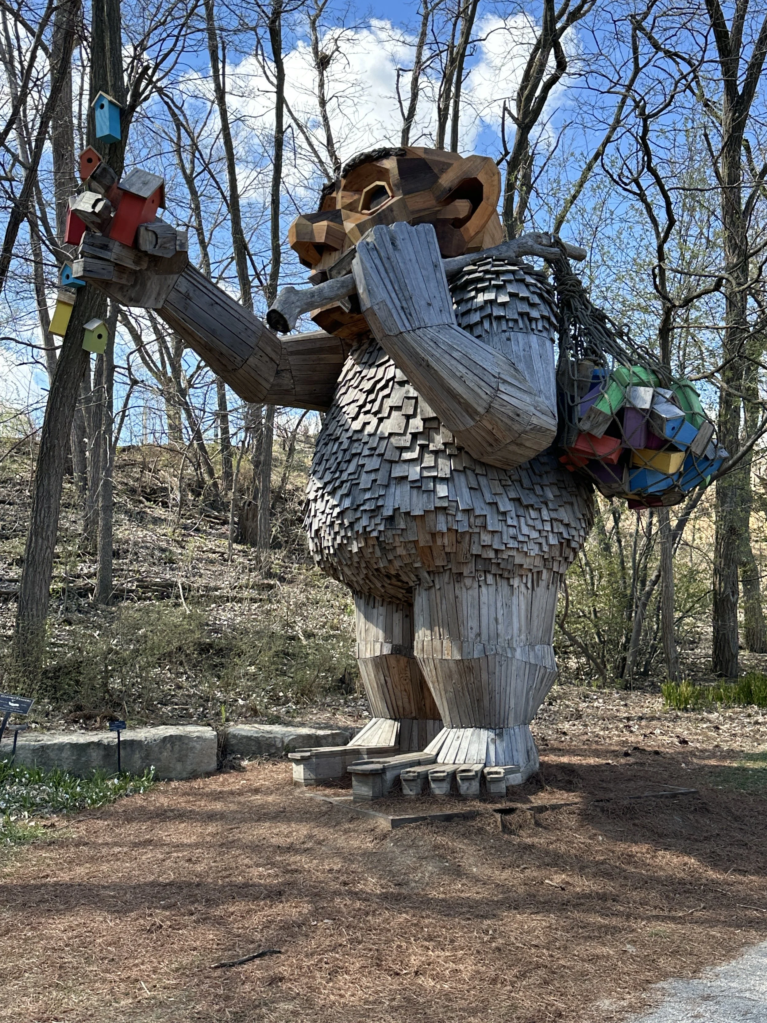 We’ve all grown up hearing fairy tales. In those tales, trolls were usually mean, gruff creatures that many people did not like or relate to. I’m happy to say one of my favorite artists, Thomas Dambo, has turned that storyline around with his famous troll creations and you can see six large, beautiful trolls at Lauritzen Gardens in Omaha until May 18.