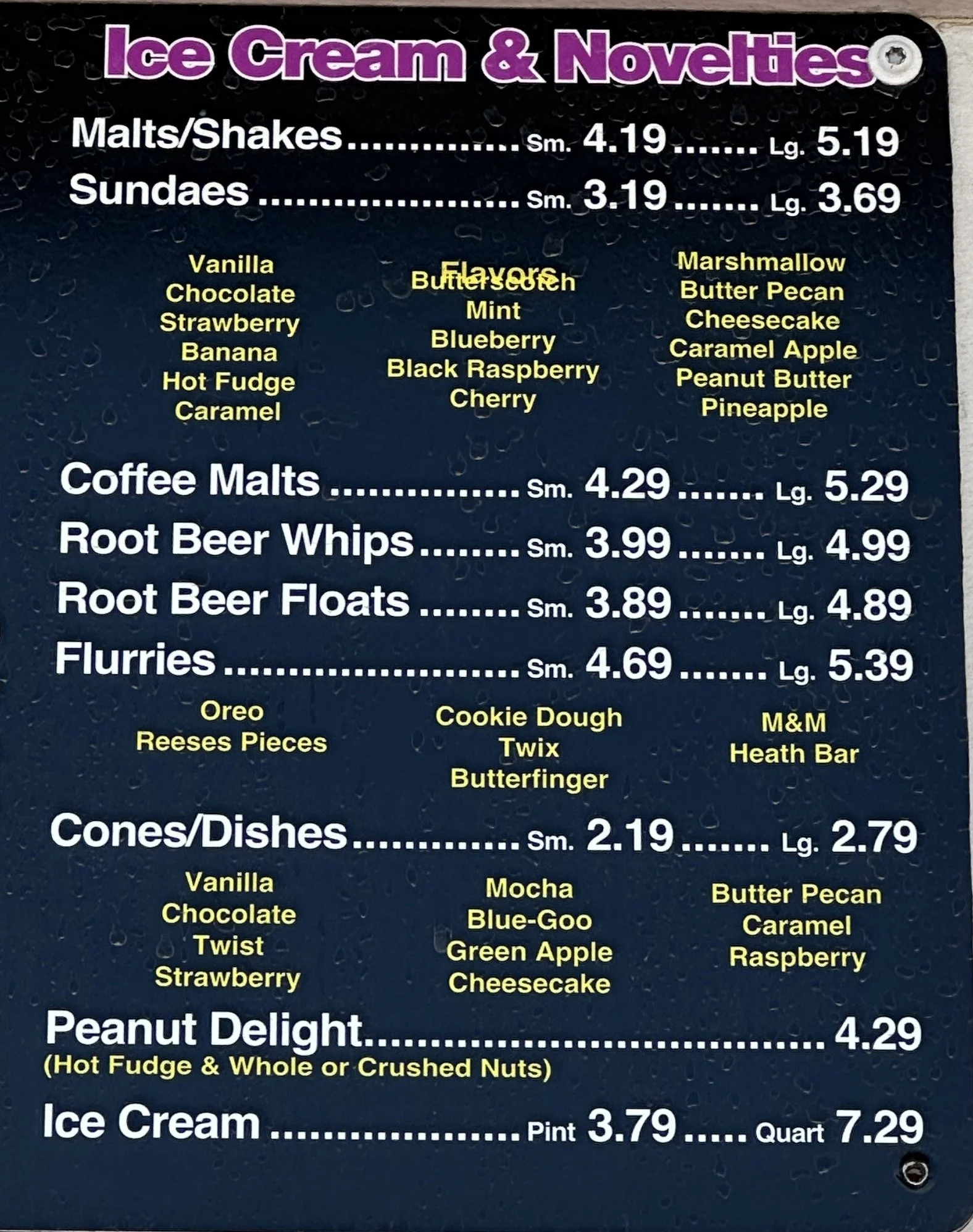 My family loves the ice cream treats too. They have a wide variety of shakes and sundaes. Our family really likes the butterscotch shake. That flavor is sometimes a challenge to find elsewhere.